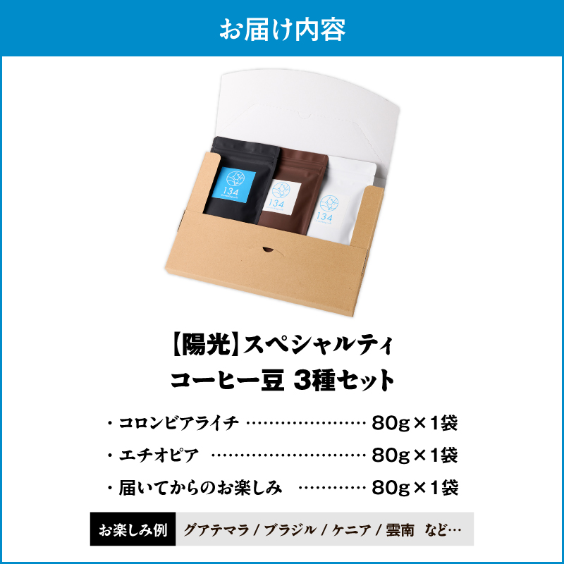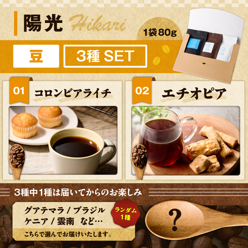 コーヒー豆(コロンビアライチ、エチオピア、グアテマラ、ブラジル、ケニア、雲南など)