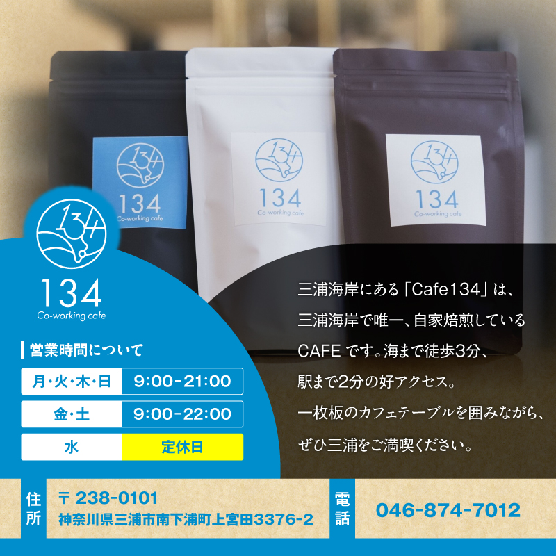 三浦海岸にある「Cafe134」は、三浦海岸で唯一、自家焙煎しているCAFEです。