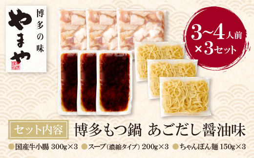 あごだし醤油仕立てのスープは九州ならではの甘めの味わいで、もつの旨みを引き立てます。