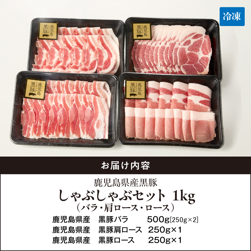 国産 黒豚 豚肉 豚 小分け 冷凍 お肉 スライス 薄切り 豚しゃぶ しゃぶしゃぶ しゃぶしゃぶ用 すき焼き しょうが焼き 豚バラ肉 豚肩ロース肉 豚ロース肉 鎌田黒豚農場 ふるさと納税 鹿児島 鹿屋市 おすすめ ランキング プレゼント ギフト KN054-001-03