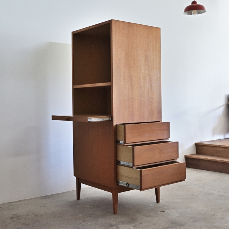 材質:チーク、メラミン化粧板(オープン棚内部)、桐(引き出し内部)
