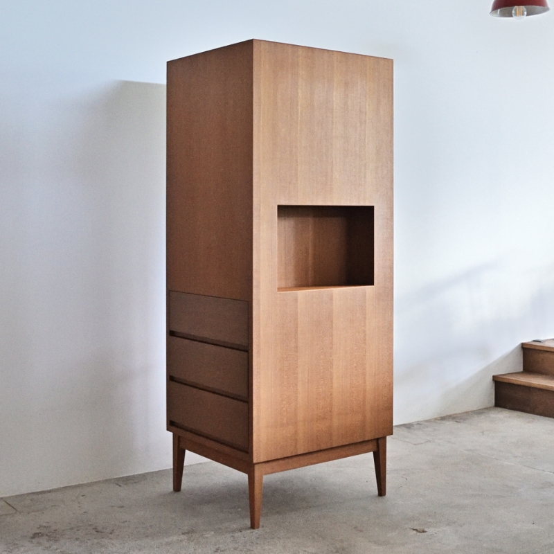オカモトカグでは一級家具製作技能士の資格を持つ職人の精度の高い技術と、モダニズムの洗練されたデザインを取り入れたオリジナル家具・オーダー家具の専門店です。チーク、オーク、ウォールナットなどの材料を使い、シンプルでゆとりのある家具を目指しています。材料を大切に使い、無駄のない製作工程も考えながら、職人のこだわりの技術でひとつひとつ丁寧に製作しています。