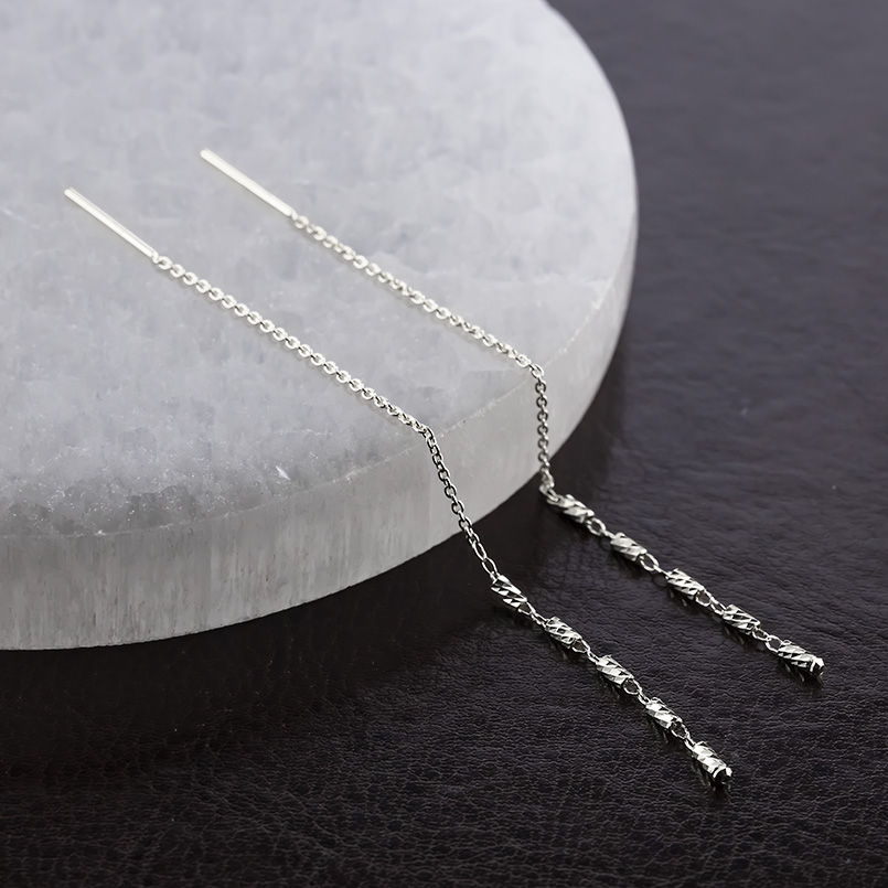 動きに合わせてカット面が光を反射し純プラチナならではの上品な輝きを楽しめるアメリカンピアス