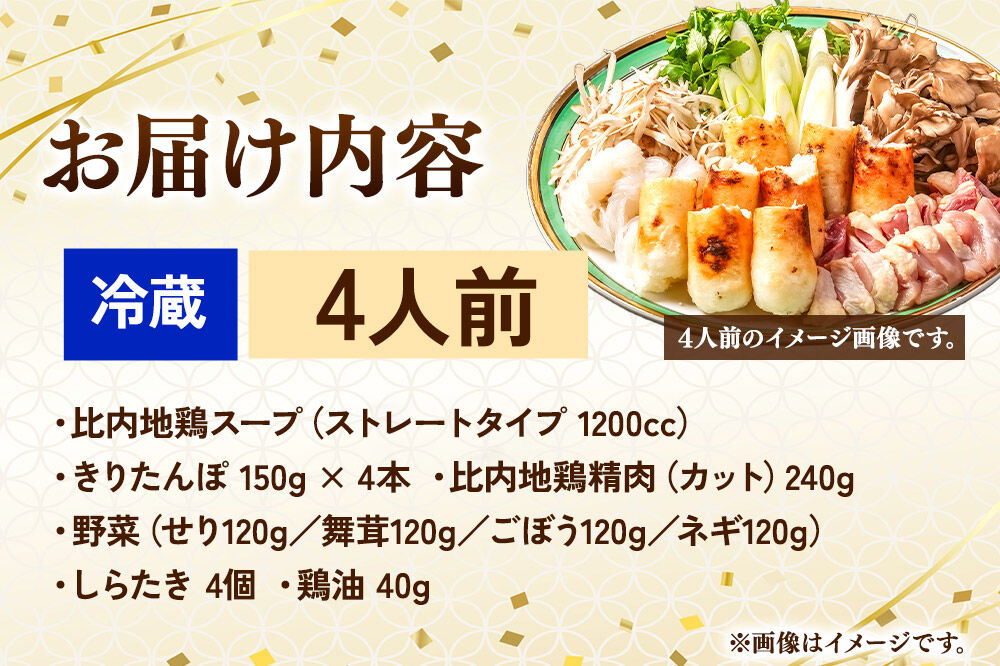 ![比内地鶏 きりたんぽ鍋 セット 4人前【冷蔵発送】秋田 比内地鶏専門店ソリレス自家製 贈り物 食べログ百名店2025選出店 [比内地鶏専門 備長炭 鮮度 きりたんぽ鍋 きりたんぽ鍋セット 鍋セット 取り寄せ 秋田名物 比内地鶏 ギフト] 秋田県秋田市](https://www.furusato.aeon.co.jp/g_img/052019/file_145054dbafb5e3df3310f4931f3918de.webp)