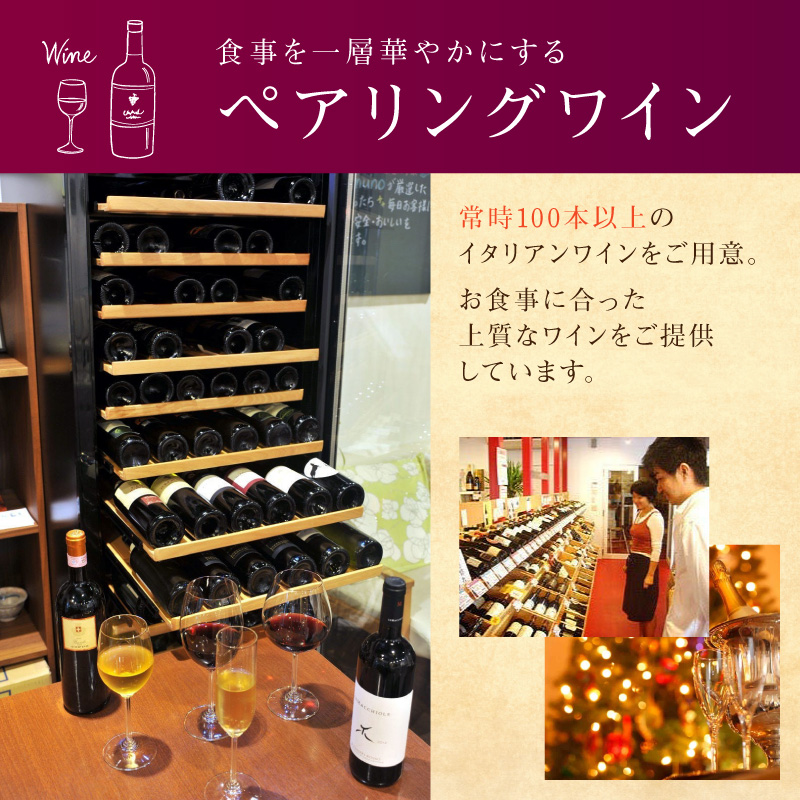 このペアコースお食事券では、泉州の食材を取り入れたイタリア料理とワインがセットで召し上がっていただけます。