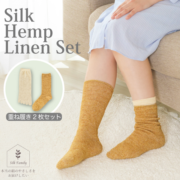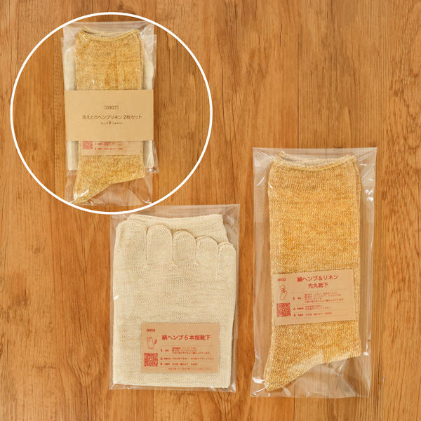 内側シルク、外側ヘンプの5本指靴下と先丸靴下のセットです。