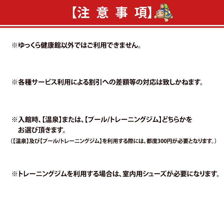 ※入館時、【温泉】または、【プール/トレーニングジム】どちらかをお選び頂きます。