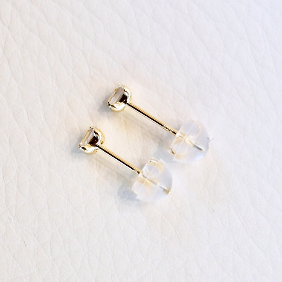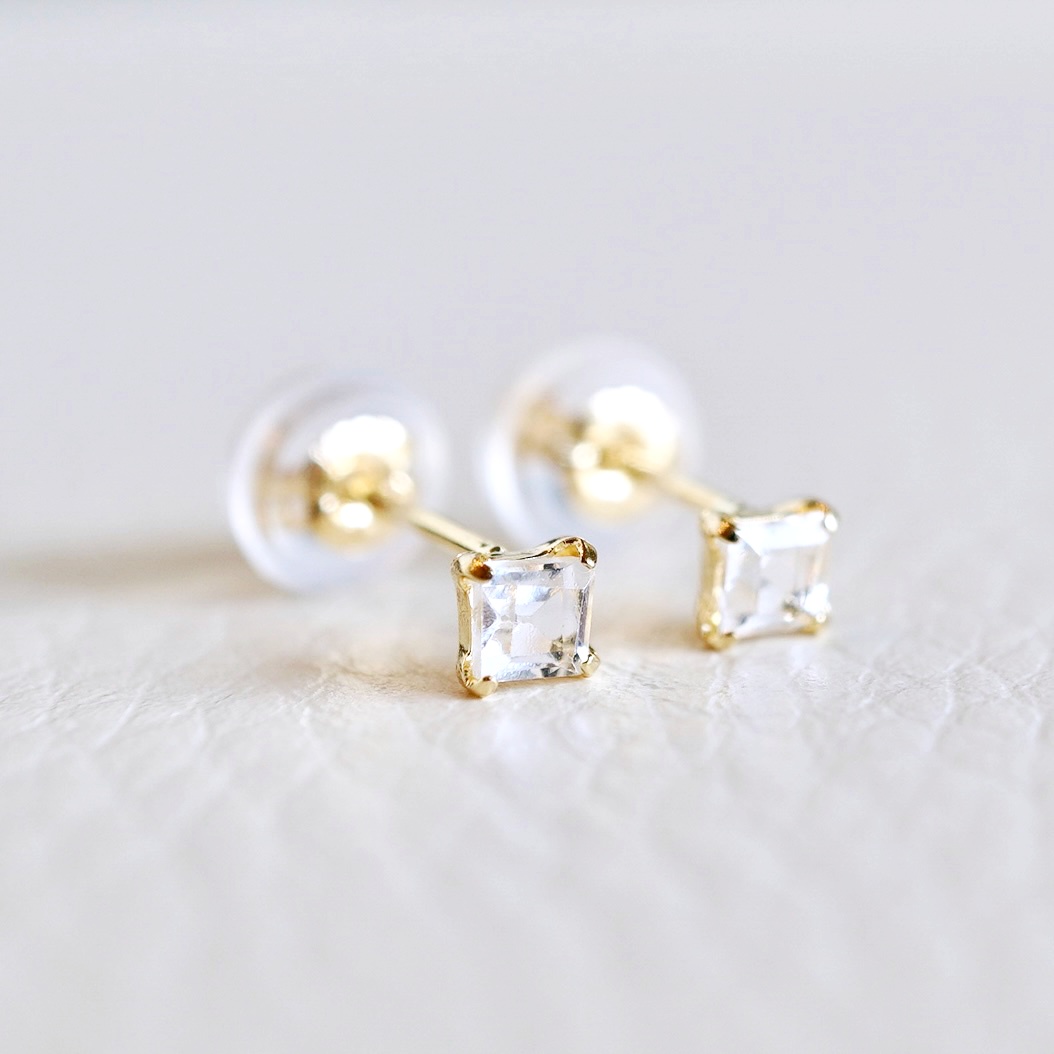 スクエアカットのホワイトトパーズをシンプルに仕上げたピアスです。