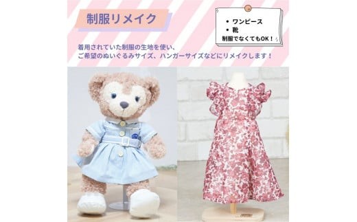 着用されていた制服をお送り頂き、その生地を使って、ご希望のぬいぐるみサイズ、ハンガーサイズなどにリメイクいたします。