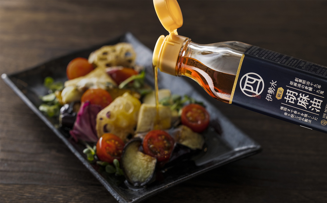 伊勢水純正胡麻油は当社伝統の圧搾製法に加え、特別な冷却工程を加えた