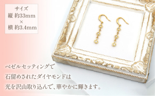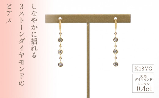 K18イエローゴールド ダイヤ3石 0.20×2 ピアス × 1ペア