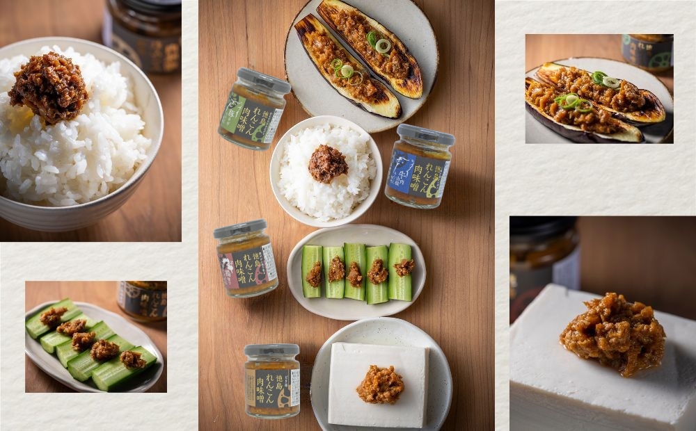 ◆徳島れんこん肉味噌・・・万能ピリ辛味。料理に旨味が加わるやみつきのピリ辛味。