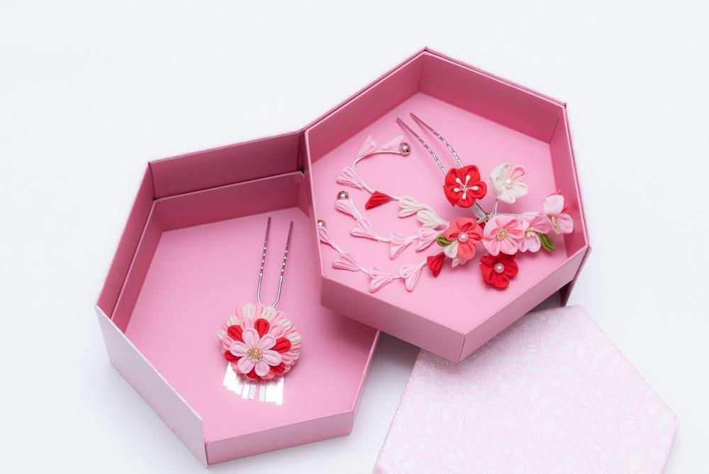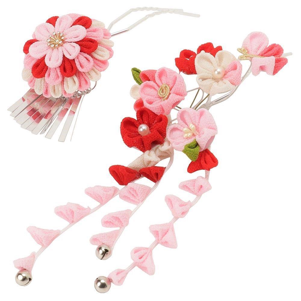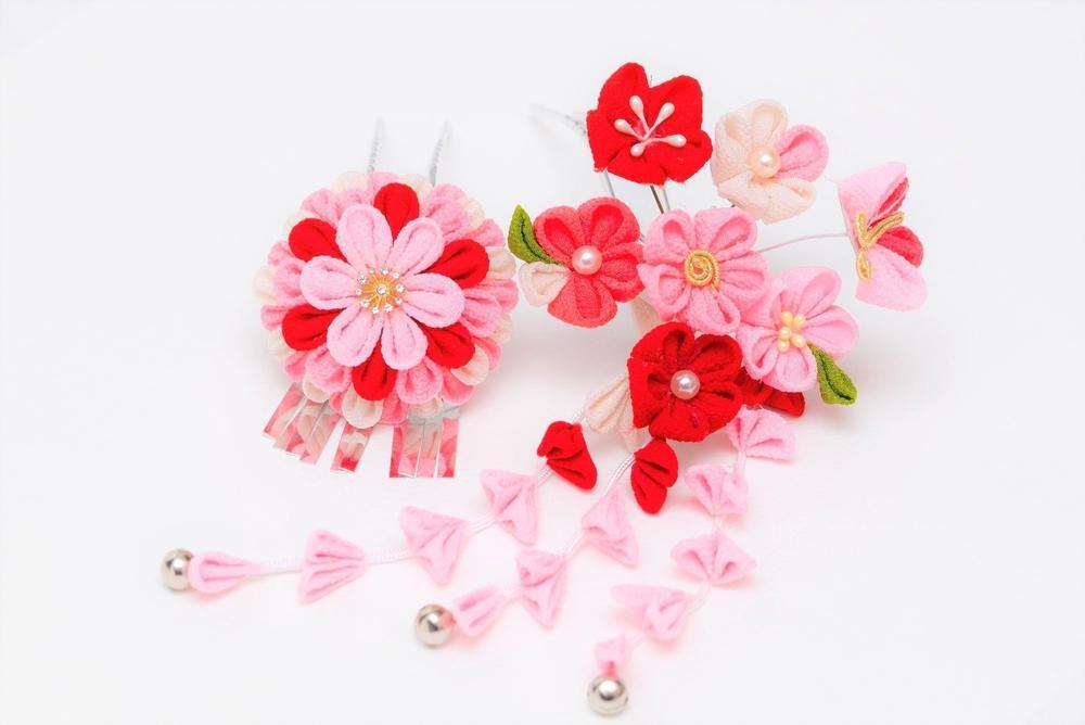 ふっくら、はんなり七五三つまみ細工かんざし(赤・ピンク)