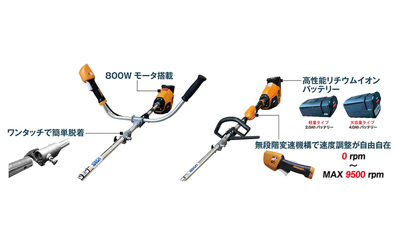 スーパーカルマーelexアタッチ・スーパーうね草取りまーelex アタッチ スタンダード・クイックティラーelexアタッチ・2.0Ahバッテリー