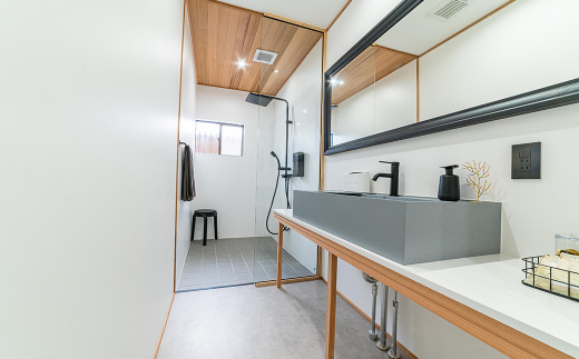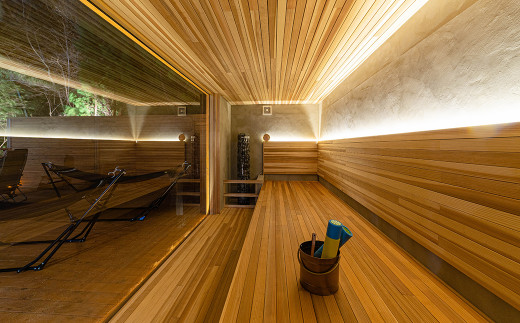 貸別荘によくあるバレルサウナとは違い基礎から建築された解放感溢れるサウナ小屋で心ゆくまでお身体を温めた後は、こちらも貸別荘としては珍しいチラー完備の水風呂をお楽しみいただけます。広い外気浴スペースで美しい竹林を眺めたり、焚火専用のスペースでただ火を眺める穏やかな時間はsimanoyadoyaでしか味わう事の出来ない贅沢な時間です。