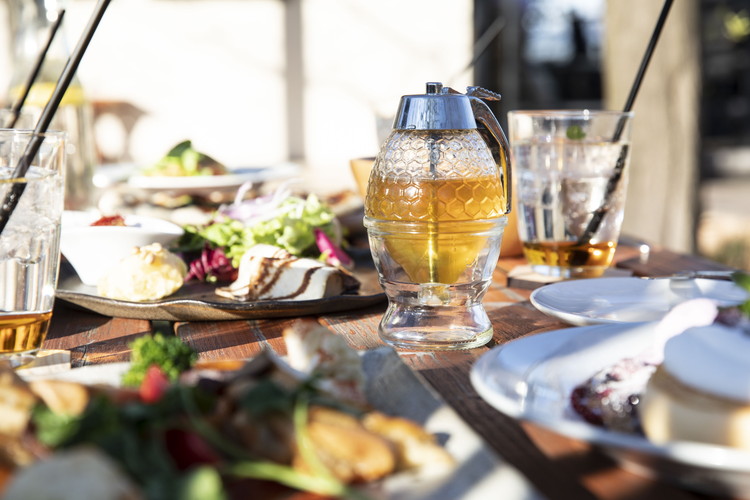 開放的なテラス席では、運が良ければミツバチに出会えるかもしれません。
