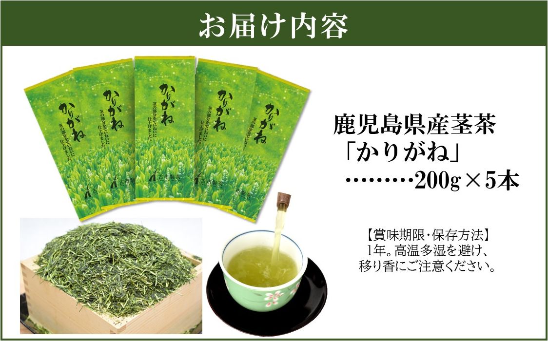 鹿児島県産茎茶「かりがね」200g×5本