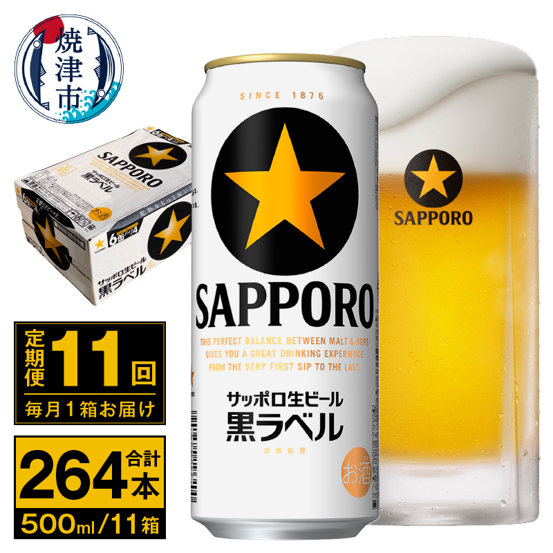 (定期便)サッポロ生ビール黒ラベル500ml×24本(1箱)×11回