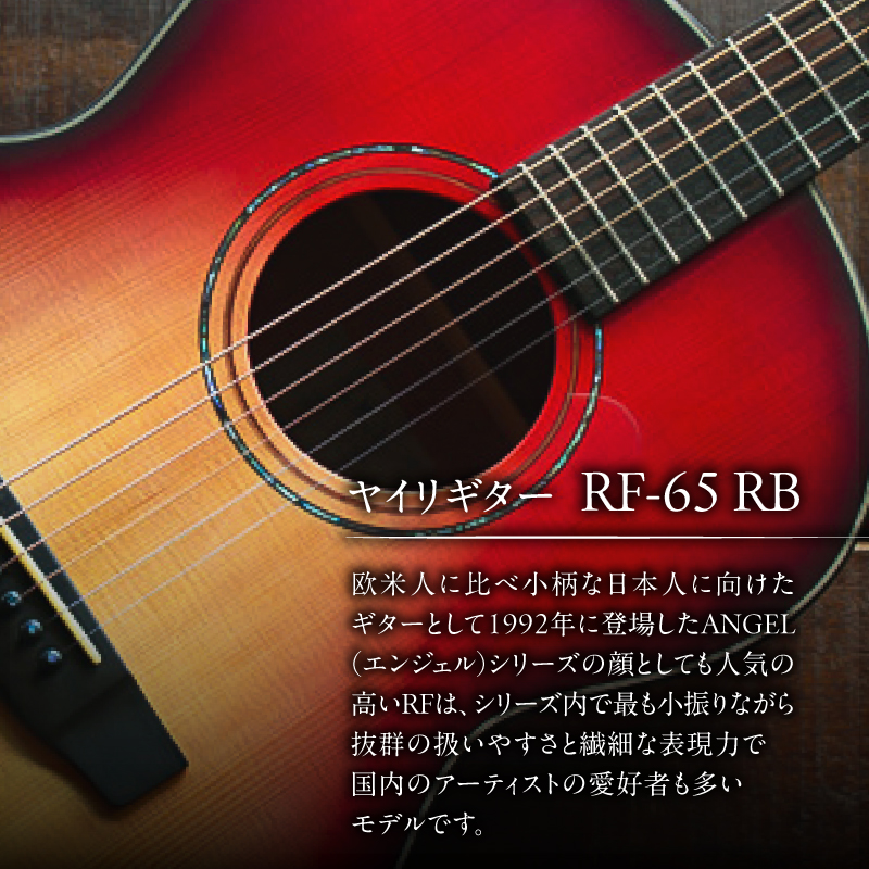 欧米人に比べ小柄な日本人に向けたギターとして1992年に登場したANGEL(エンジェル)シリーズの顔としても人気の高いRFは、シリーズ内で最も小振りながら抜群の扱いやすさと繊細な表現力で国内のアーティストの愛好者も多いモデルです。