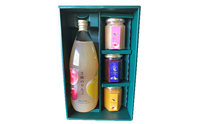 ジャム160g(プルーン・黄金桃・白桃)各1個、3種のりんごジュース1L 1本