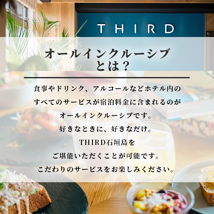 沖縄や石垣島の食材をふんだんに使ったお食事、アルコールを含むドリンクなどがご宿泊費用に含まれるオールインクルーシブプランを提供しており、お財布を気にすることなく、自由で快適なホテルステイをお楽しみいただけます。