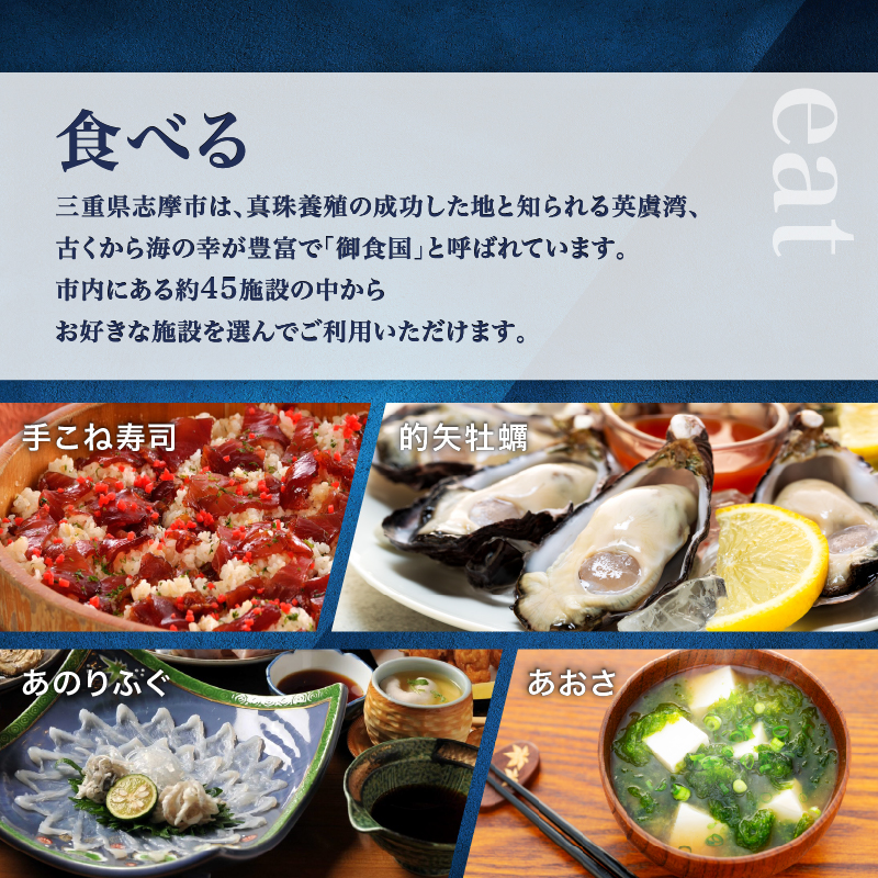 ・ご利用の際は、利用希望施設へ直接電話でご予約ください。その際「御食国志摩満喫旅行券」を使う旨を必ずお伝えください。