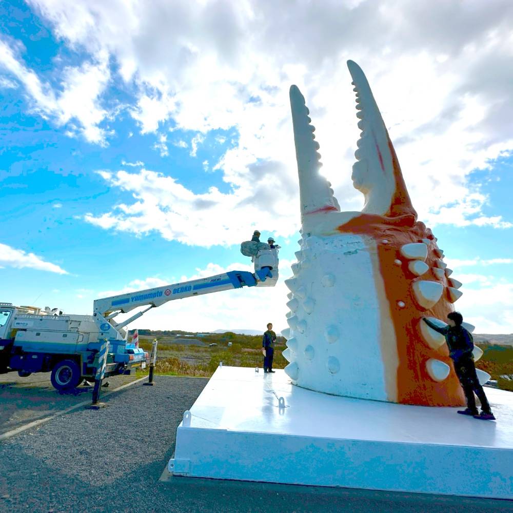 1983年、芸術家・長崎歳氏が制作した高さ約12mの巨大モニュメント「カニの爪」は、紋別市で開催された「流氷アートフェスティバル」をきっかけに誕生しました。オホーツクの豊かな海を象徴し、人々に自然との共生を問いかける存在として、40年以上にわたり市民や観光客から親しまれてきました。現在でも紋別を代表するシンボルとして、多くの人々に愛され続けています。