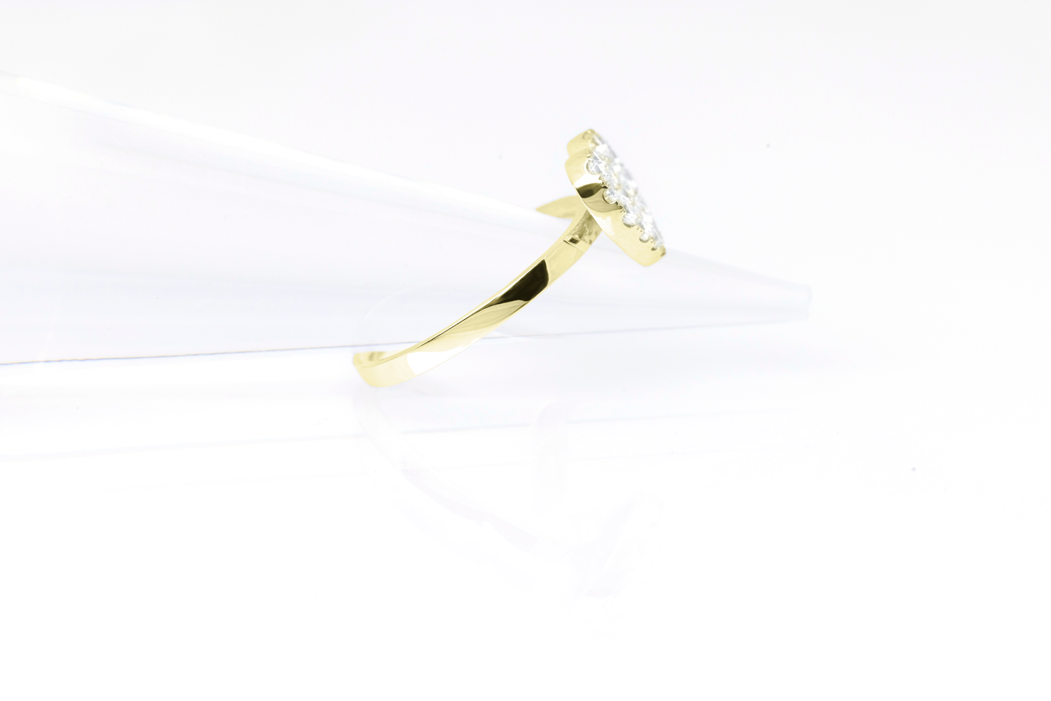 ハート型をかたどったモチーフに、ダイヤモンドを贅沢に敷き詰めたエレガントなリング。