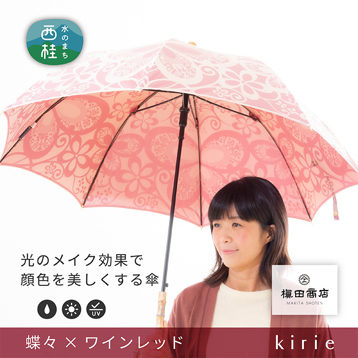 No.401 高級織物傘【婦人長傘】薄赤系・かわいらしさと上品さ漂う晴雨兼用傘-[n0401_mak]