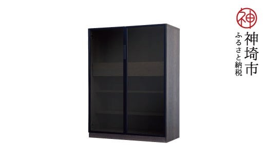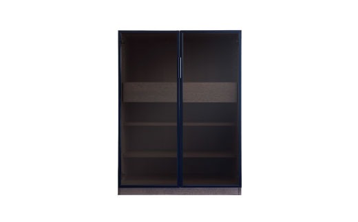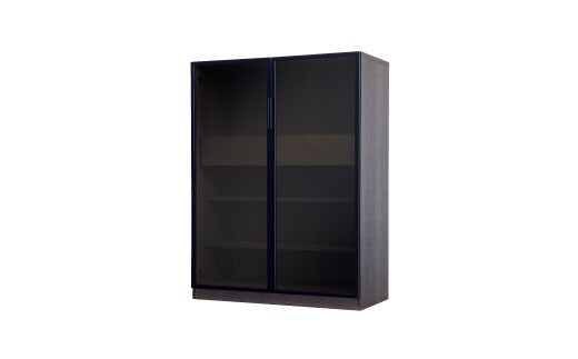 キッチン、書斎どちらにもマッチする商品。うっすらとブラウンがかった上品な透け感のガラスとしっかりとした重厚感のあるブラックのアルミフレームが調和した、ストレージです。