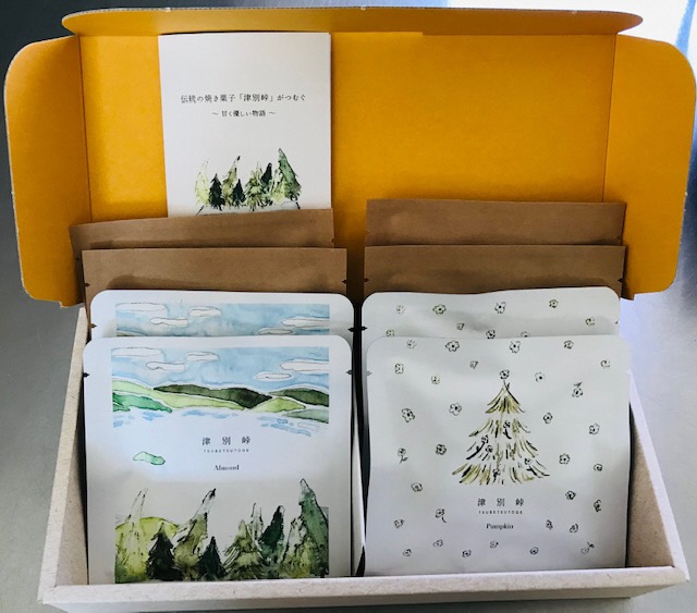 標高1000mの高さから屈斜路湖を見下ろす津別峠は、夏は35℃、冬はマイナス27℃という厳しさと美しさをみせる大自然の中にあり、「津別峠」はその美しさを表現した焼菓子です。