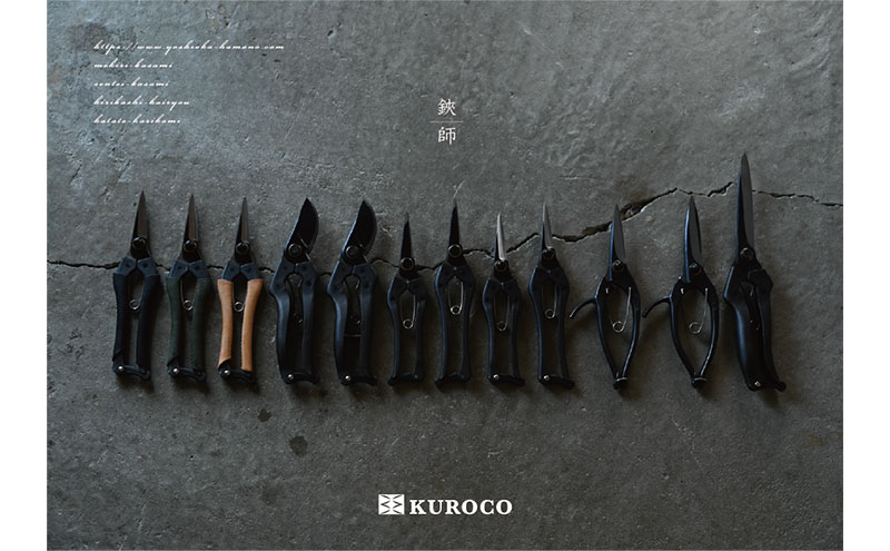 吉岡刃物製作所では、初代喜八氏の洋裁鋏製造から始まり、現在は刈込鋏を中心に園芸用刃物の製造を行っています。 当方の鋏(はさみ)づくりは、目に見えない誤差や違和感を職人の技と経験で感じ取り、丁寧に修正と調整を行うことで仕上げています。