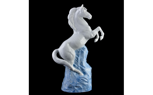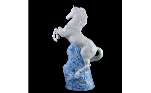 力強い馬の姿を伊万里鍋島焼の白磁でお届けします。立派なたてがみをなびかせ、隆々とした筋肉で勢いよく跳躍する大人の馬の姿が、威厳を感じさせます。