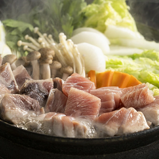 ネギや白菜などの野菜と一緒に煮込んでいただければ、鮪の骨から出るダシでまろやかで、コクのある本格的な鮪料理を簡単に楽しめます。
