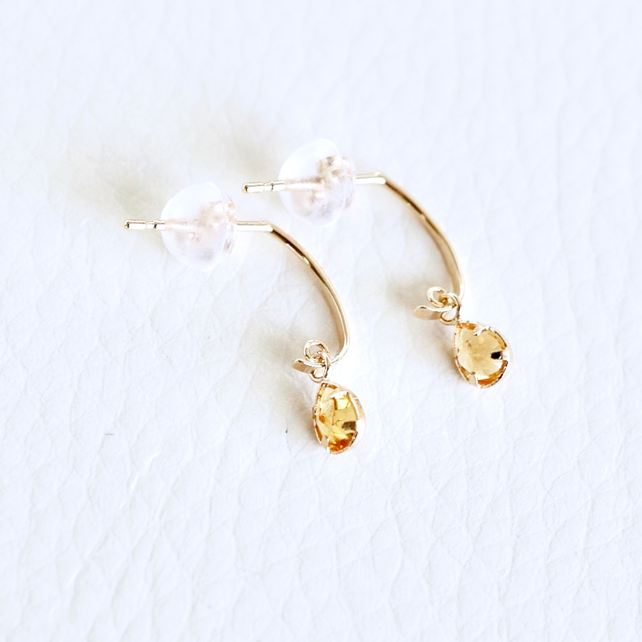 カーブのかかったシンプルな地金ラインの先に シトリンを揺れるようにセッティングしました。
