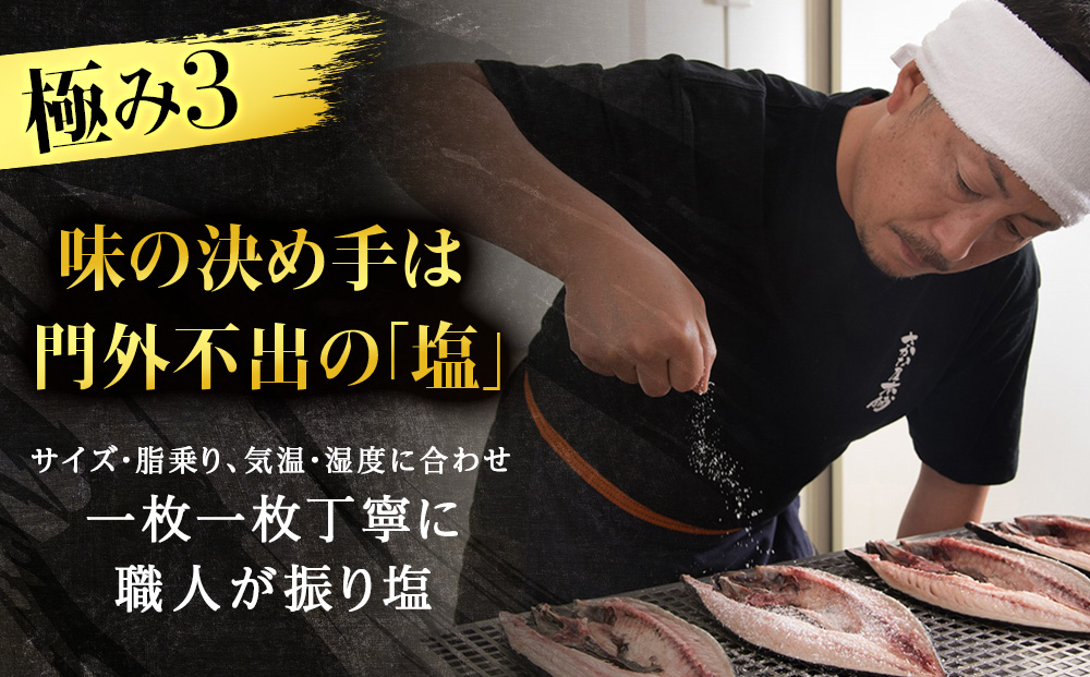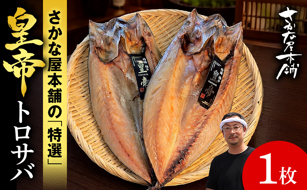 【皇帝とは】…さかな屋本舗の厳しい品質基準(サイズ・脂質・旨味・鮮度)より更に上、選りすぐり極上の原料のみを使用し干物の匠による本物を追求した特別な製造方法にて育てあげられ完成した別格の【極干】干物です。