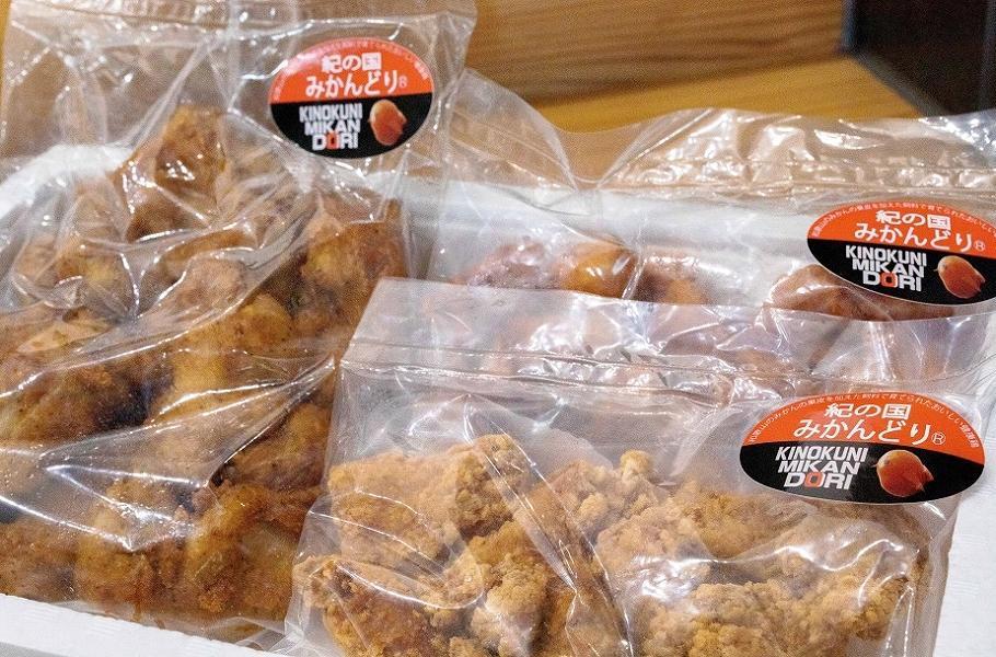 和歌山のブランド鶏「紀の国みかんどり」和歌山で採れたみかんの果皮を乾燥させて飼料にし、その飼料で自然豊かな山麓ですくすくと育った元気鶏です。その「紀の国みかんどり」の美味しい骨付き部位をスパイスをきかせた自慢のフライドチキンです。是非ご賞味ください。