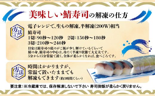 目安は鯖寿司の底のがご飯が少し解けているぐらいで 鯖の身、鯖寿司の中心は、冷たく半凍り状態で大丈夫です。