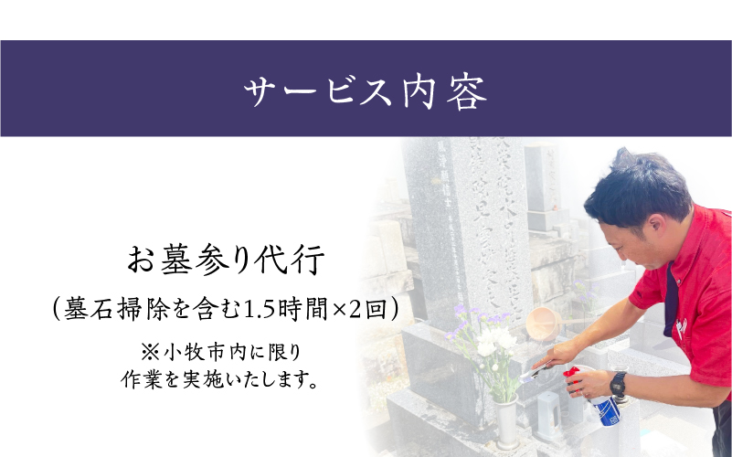 お墓参り代行(墓石掃除を含む1.5時間程度×2回)