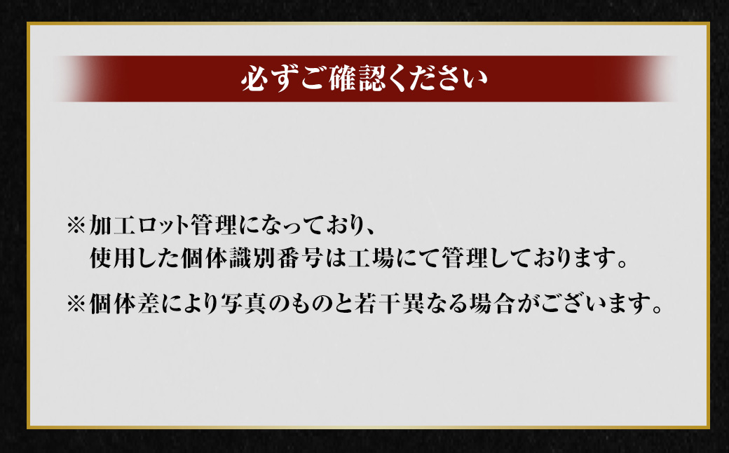 ※加工ロット管理になっており、使用した個体識別番号は工場にて管理しております。