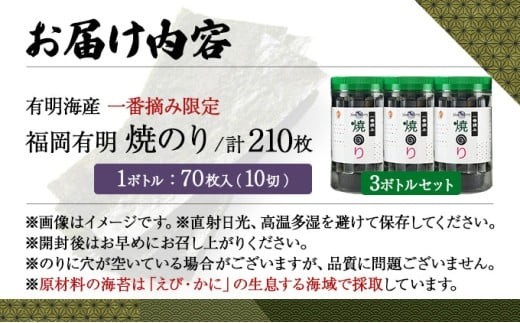 福岡有明のり(焼のり)計210枚(10切70枚×3本)