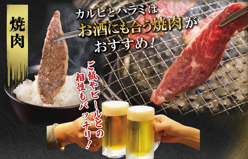 松阪牛の上質な霜降りたっぷりの特選カルビと一頭からわずかしか取れない希少部位のハラミをセットにしました。 それぞれ違った味わいを焼肉でお楽しみください。
