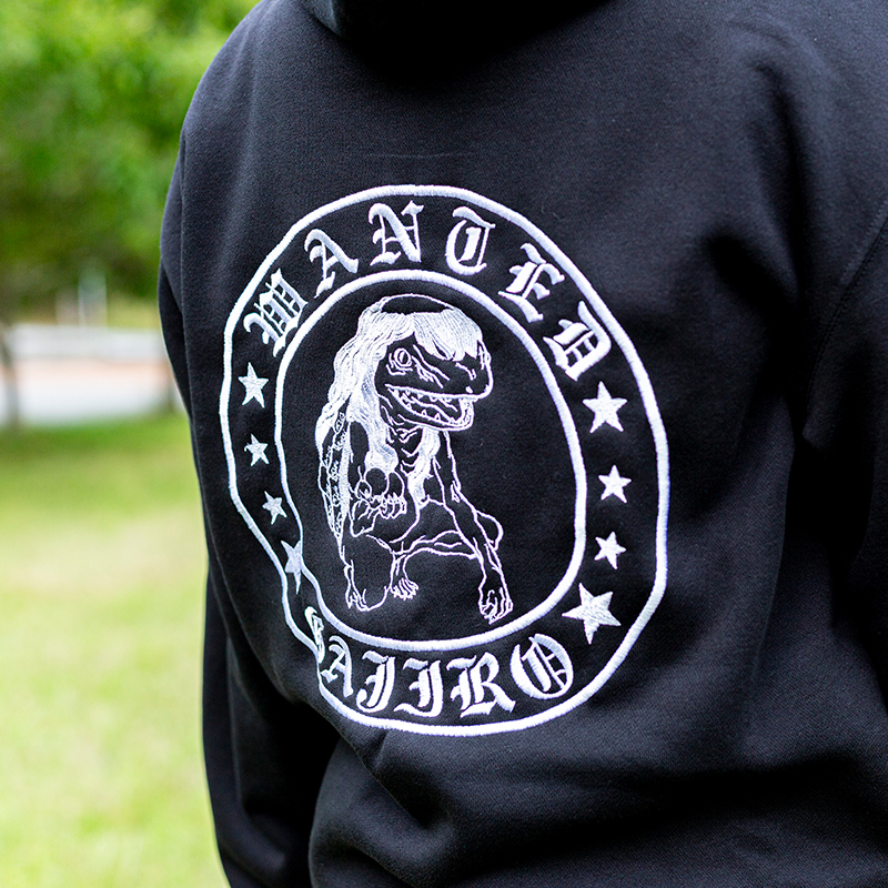 単なるプリントではなく、繊細な刺繍でガジロウが表現されているため、立体感と高級感があり、通常のキャラクターグッズとは一線を画すクールな仕上がりになっています。