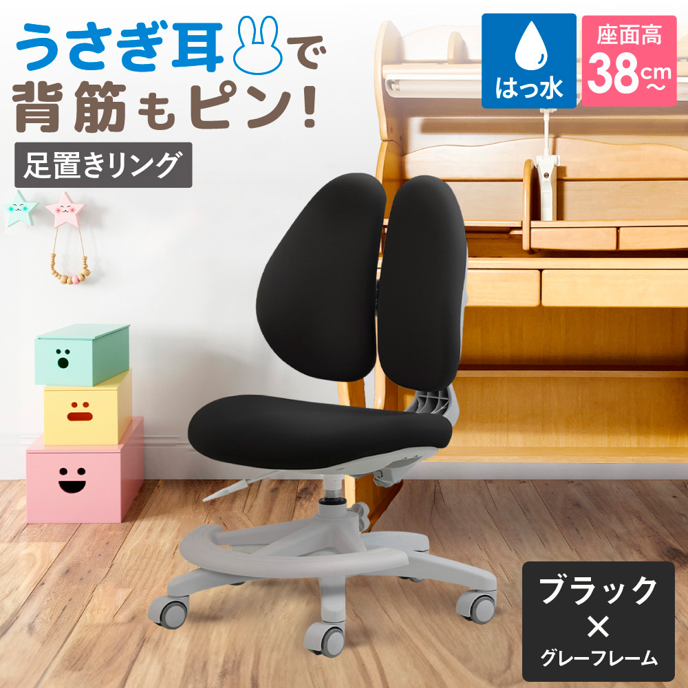 Rabbitチェア(足置きリング付き)ブラック×グレーフレーム / デスクチェア オフィスチェア 背もたれスライドチェア スライド背もたれ 椅子 足置きリングチェア フットリングチェア 撥水チェア ファブリックチェア モールドウレタンチェア 高さ調節チェア デスクワーク 椅子 在宅ワーク 椅子 小柄向けチェア パソコンチェア コンパクトチェア シンプルデザインチェア 千葉県 No.397-01-[397-01]