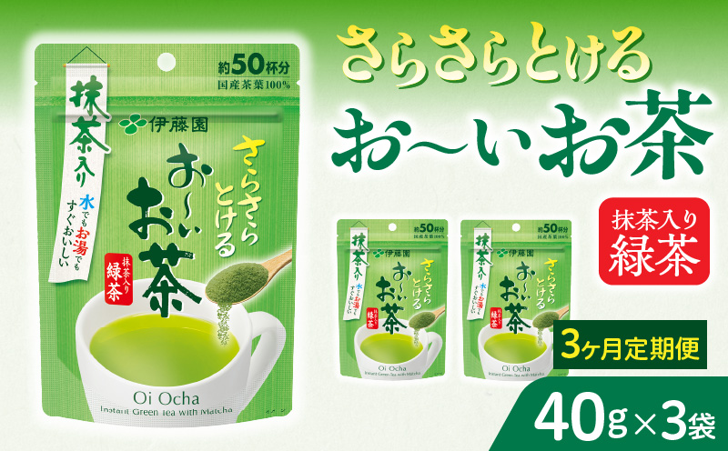3ヶ月 定期便 さらさらとける おーいお茶 粉末茶 粉末 粉末緑茶 伊藤園 抹茶入り 緑茶 40g 3袋 冷水 すぐ溶ける チャック付 旨み 味わい まろやか 独自原料 インスタント 時短 簡単 手軽 お取り寄せ 愛知県 小牧市 送料無料