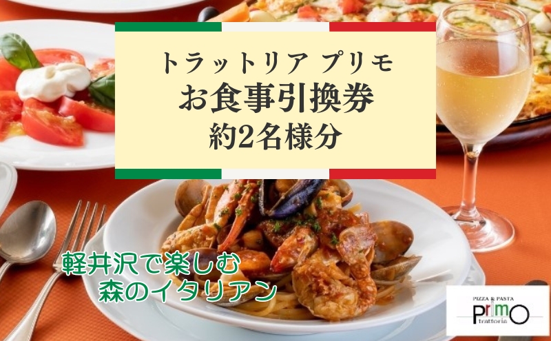 ・食事引換券:2名様分 選べる【サラダ1品、ピッツァ1枚(直径約30センチ)、パスタ(1人前 100g)、ソフトドリンク2杯】