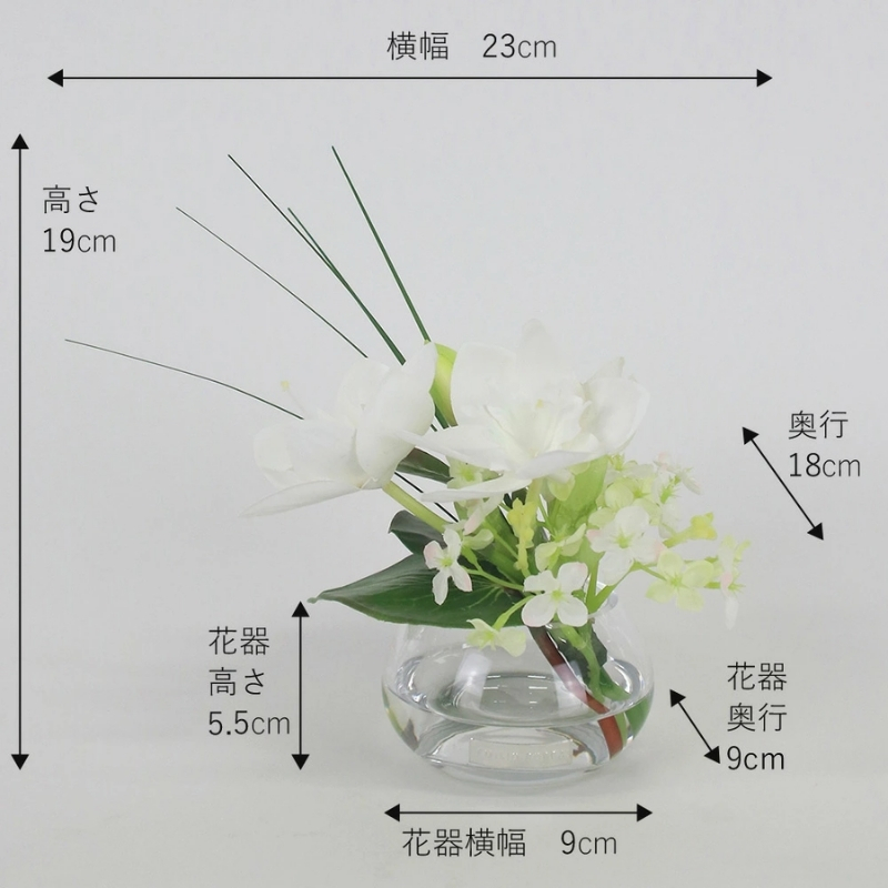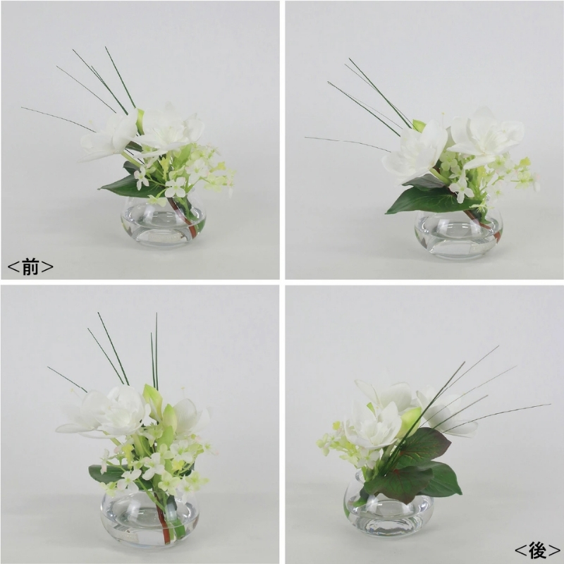 使用花材:ユーチャリス、アジサイ、ベアグラス、プロテアコルダータ