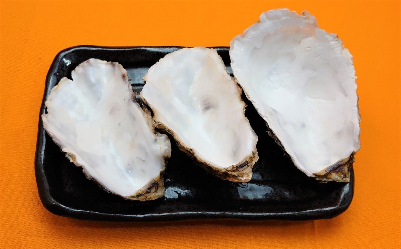 お皿としてご使用いただけるよう牡蠣殻3個をお付けします。