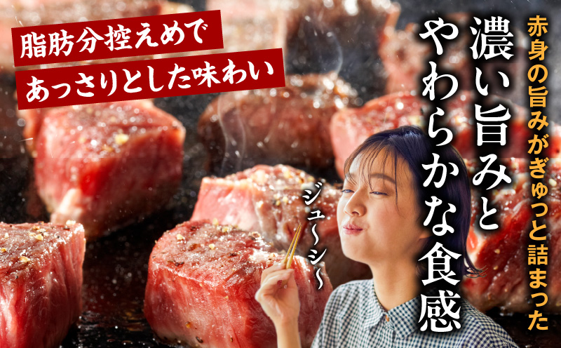 宮崎県が誇るブランド和牛「宮崎牛」の赤身肉を、食べやすくひと口サイズのサイコロ状にカットしました。
