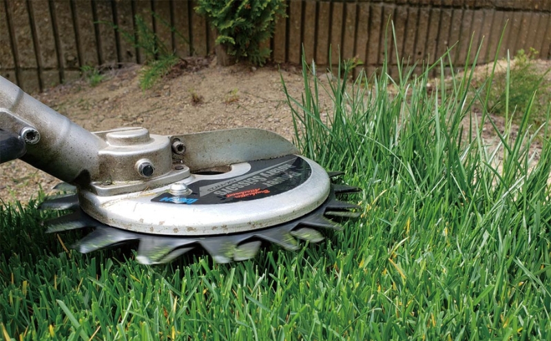 上下2枚の刈刃を逆回転させる構造ならびに減速ギヤにより回転を1/20まで減速、回転トルクは20倍となり、力強く雑草をハサミ刈ります。また、上下逆回転で挟んだ草のみを刈る方式ですので、縁石・ポール・樹木などを傷つける事なく容易にキワ刈ができる事も大きな特徴です。